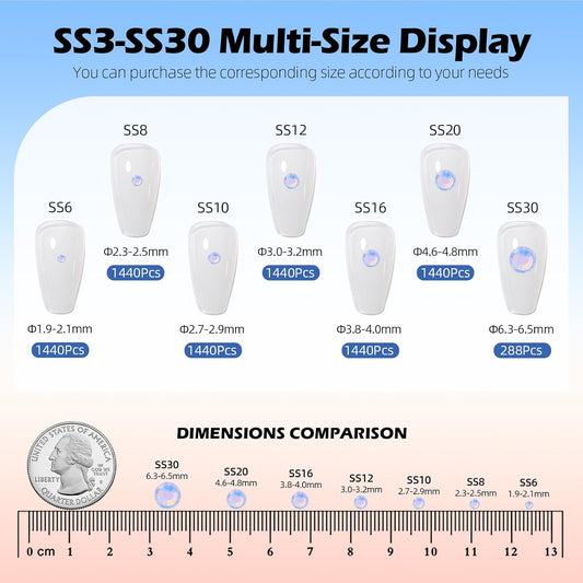 F Light Blue Flatback Rhinestones, Glass Rhinestones for Nail Art and Craft, Glue Fix, Loose Crystal Gemstones(F Light Blue, SS6, 1440pcs, 1.9-2.0mm)
