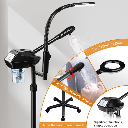 Facial Steamer Professional on Wheels with Time Setting, Estheticians Steamer with More Steam for Deep Cleansing and Hydration, Face Steamer Adjustable Height for Spa, Salon and Home Use