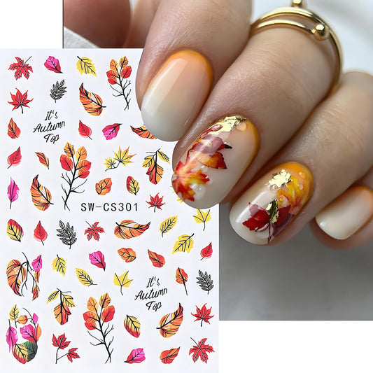 Fall Maple Leaves Nail Art Stickers for Thanksgiving, Fall Nail Art Decals 3D Self-Adhesive Leaf Flower Tree Nail Design 6Pcs Nail Art Supplies for Women Nail Decoration