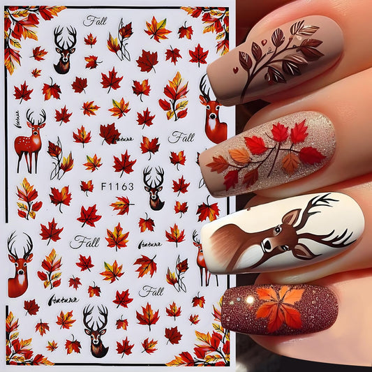 Fall Nail Stickers Maple Leaf Nail Decals 6PCS 3D Self-Adhesive Leaves Deer Nail Designs Stickers Autumn Nail Art Supplies Slider Fall Decorations for Nail Art Women DIY Manicure Accessories