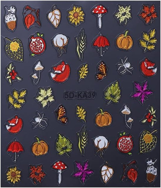 Fall Nails Stickers Autumn Leaves Nails Sticker 5D Embossed Maple Leaves Pumpkins Self Adhesive Sticker Nail Decals Colorful Thanksgiving Nail Art Decal Fall Decals for Nail DIY Manicure 1Sheet