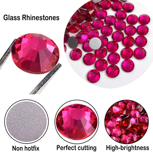 Flatback Glass Rhinestones,Bedazzler Gems 1440pcs Non Hot fix Rhinestones for Nail Charms Crafts Clothes Tumblers,Hot Pink,SS10