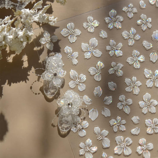 Flower Nail Stickers for Nail Art White Magnolia Petals Wedding Nails Design 3D Nail Art Stickers Decals Shiny Shell Light Crystal Flowers Stickers for Nails Summer DIY Manicure Decorations 1Pcs