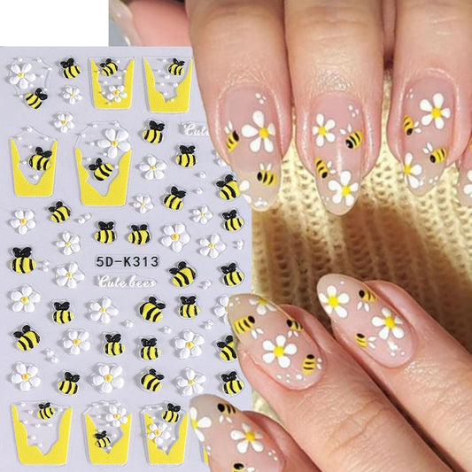 Flower Nail Sticker French Tips Nail Decals Insect Nail Art Stickers Bee Ladybug Daisy Five Petal Floral White Yellow Pink Design Cute Nails Stickers for Nails Art Summer Manicure Decor for Women