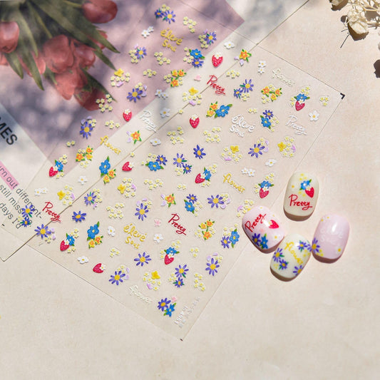 Flower Nail Stickers for Nail Art Colorful Nail Stickers Small Floral Nail Decals Self Adhesive 5D Embossed with Design Spring Manicure Supplies Charm for Women Girls Accessories