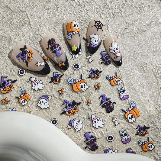 Ghost Nail Sticker Decals Halloween Nail Art Stickers Cat Nails Art Decals with Pumpkin Design 5D Self Adhesive Nails Decoration for Women Girls Kid Manicure DIY Decoration Cute Accessories
