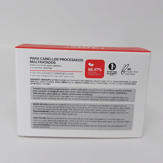 Ginger Milk Hair Repair Ampoule with Hyaluronic Acid for Damaged Hair Treatment (Pack 3 x 0.5 fl oz)