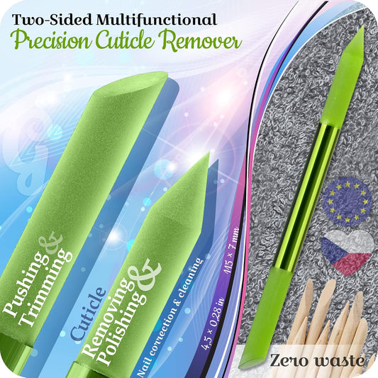 Glass Cuticle Pusher by GLADZY - Manicure Stick, Genuine Czech Quality, Professional Precision Filing Cuticle Remover, Abrasive Surface Never Wears Out
