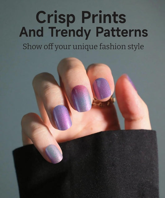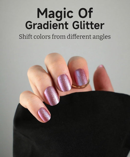 Glitter Nail Polish Strips, 32 Pcs Salon Quality Gel Nail Stickers, Long Lasting Wraps Easy to Use & Remove (Gradient Pink Violet)