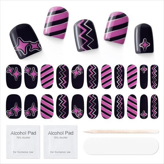 Gloss Nail Strips|Uv Free|22 Pcs,Gel Nail Stickers|Long Lasting Two Weeks and Easy to Apply&Remove|Black Purple Pop