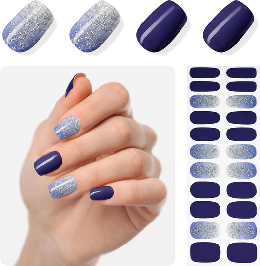 Gloss Nail Strips|Uv Free|22 Pcs,Gel Nail Stickers|Long Lasting Two Weeks and Easy to Apply&Remove|Dazzle Blue