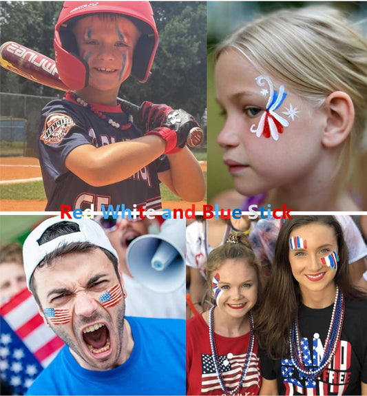 Go Ho 3 Colors Red White and Blue Face Paint Stick-Waterproof Eye Black Face Body Paint Professional Halloween SFX Queen of Hearts,Sally Makeup,Safe Facepaint Nose&Lip Smacking Sticks