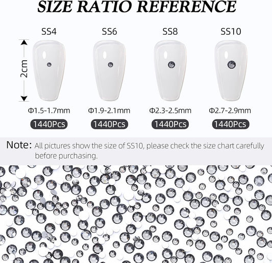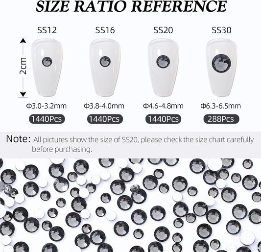 Gray Flatback Rhinestones, Glass Rhinestones for Nail Art and Craft, Glue Fix, Loose Crystal Gemstones(Gray, SS10, 1440pcs, 2.7-2.8mm)