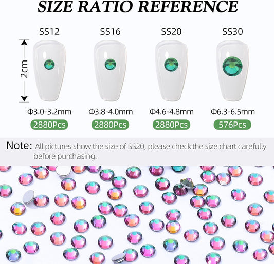 Green Volcano Flatback Rhinestones, Glass Rhinestones for Nail Art and Craft, Glue Fix, Loose Crystal Gemstones(Green Volcano, SS6, 2880pcs, 1.9-2.0mm)