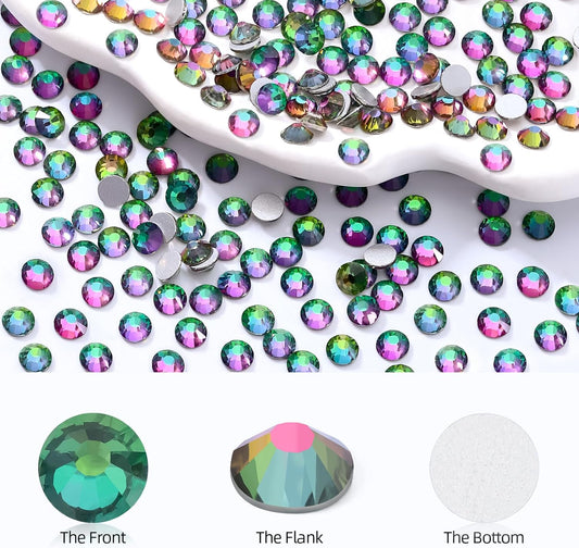 Green Volcano Flatback Rhinestones, Glass Rhinestones for Nail Art and Craft, Glue Fix, Loose Crystal Gemstones(Green Volcano, SS10, 1440pcs, 2.7-2.8mm)