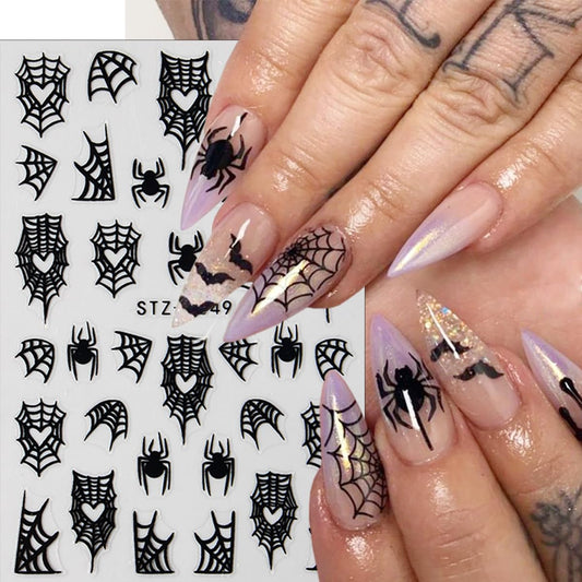 Halloween Nail Stickers 1 Sheet 3D Embossed Nail Art Stickers DIY Self-Adhesive Nails Decals Stickers with Colorful Spider Glitter Designs Holiday Nail Art Decorations