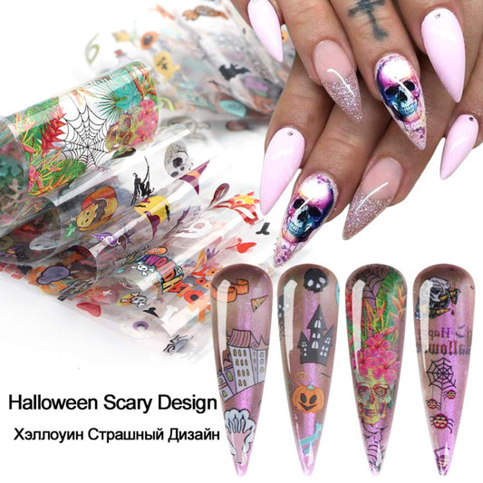 Halloween Nail Foil Set Fall Nail Decals Day of The Dead Nail Art Stickers Pumpkin Cat Designs Charms Nail Decorations DIY Transfer Paper Holographic Nail Decor Wraps Adhesive Accessory 10Pcs/Pack
