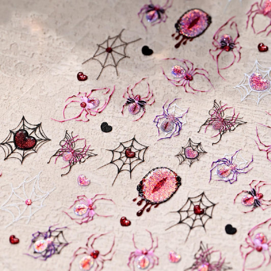 Halloween Nail Stickers for Nail Art Spider Web Nail Art Stickers Butterfly Charm Purple Black 5D Embossed Nail Decals Self-Adhesive Nails Supply Manicure Sliders Devil for Nails Decoration
