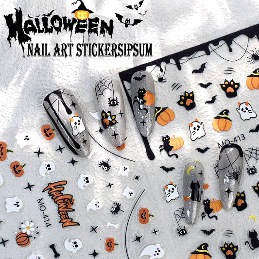 Halloween Nail Stickers, Bat, Pumpkins, Ghosts Nail Art Design 5D Manicure Decal Self-Adhesive Nail Supplies Accessories for Women