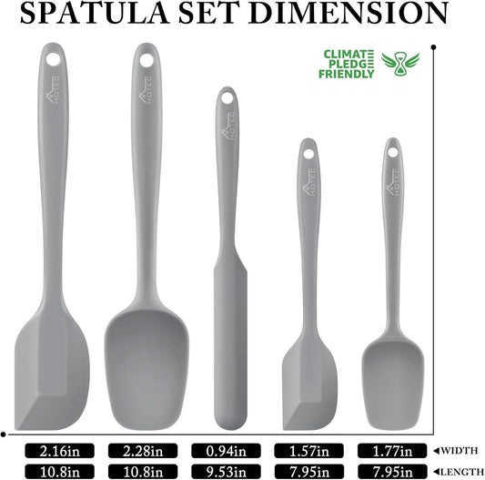 HOTEC 600℉ Heat Resistant BPA-Free Silicone Rubber Spatula Set,Kitchen Cooking Spatulas, Baking, Mixing for Non Stick Cookware, Dishwasher Safe, Set of 5 Grey
