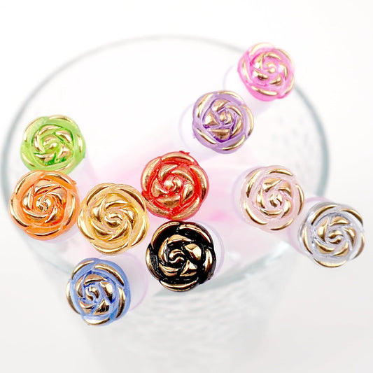 i-Laesh 10Pcs Diamond Disposable Mascara Wands with Tube - Spoolies for Eyelash Extensions, Cleaning & Brow Makeup - Multi-Color Applicator Set (3D Rose)