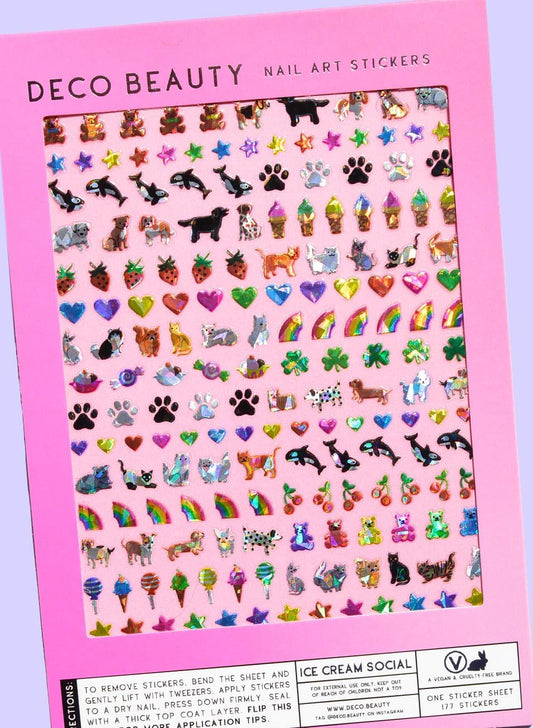Ice Cream Social Nail Stickers - Lightweight & Easy-to-Apply Nail Art with Trendy Designs - Durable & Long-Lasting Nail Stickers for Women, Ideal for DIY Manicures & Salon-Quality Nails