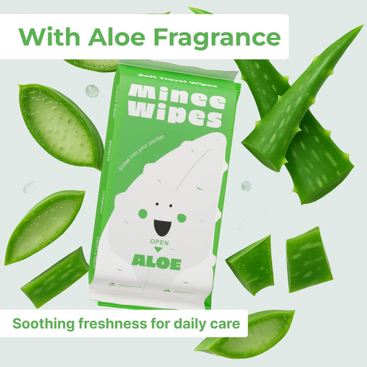 Impossibly Compact Travel Wipes with Fragrance - Skin-Friendly, Hypoallergenic & Scented Wet Wipes for Adults, Kids & Baby Care (60 Wipes Total, Aloe Vera)