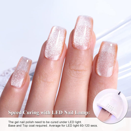 Imtiti Moonlight Cat Eye Gel Nail Polish, 15ml Nude Pink Holographic Crystal Cat Eyes Glitter UV Soak Off Gel Nail Polish with Magnetic Stick for Nail Art 1Pcs