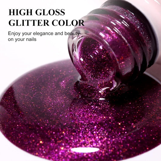 Imtiti Glitter Gel Nail Polish, Clear Purple Iridescent Glitter Gel Polish Diamond Shimmer Sparkle Soak Off UV LED Nail Gel Polish Autumn Winter Gel Polish Manicure Gel Nail Kit 10ML