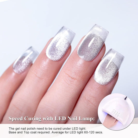 Imtiti Silver Cat Eye Gel Polish,0.5 fl.oz Holographic 9D Glitter Magnetic Soak Off UV LED Gel Nail Polish with Magnetic Stick for Nail Salon