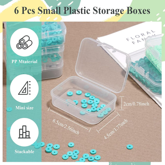 ISKYBOB 6 Packs Small Plastic Storage Containers, Clear Rectangle Bead Organizer Case with Lids for Crayons, Crafts, Bobby Pin Holder(3.7x 2.4in)
