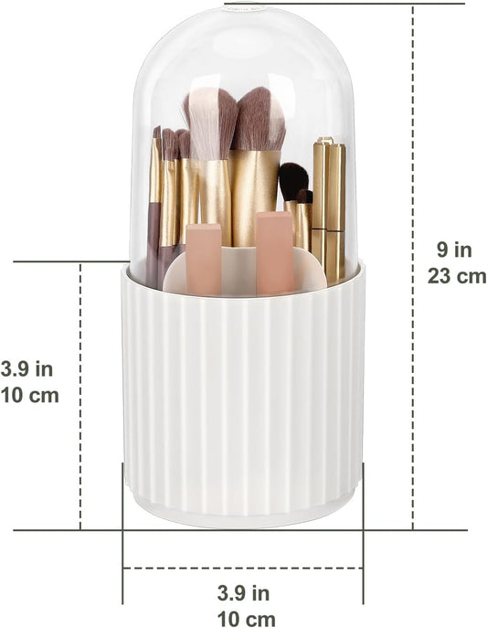 JessLab Makeup Brush Holder Organizer with Lid, 360 Degree Rotatable Makeup Brush Organizer Spinning Cosmetics Holders Brush Storage Box Display for Bathroom Vanity Countertop, White