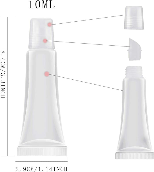 JIAKAI 10ml Mini Clear Refillable Empty Tubes Lip Gloss Balm Container,Soft Tubes Makeup Box,Shampoo Samples Empty Tubes with Screw Cover (10pcs)