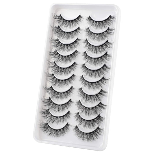 JIMIRE Fake Eyelashes Natural Look Fluffy Wispy False Lashes Cat-Eye Lashes with Thin Band Lightweight Fake Lashes 10 Pairs Pack