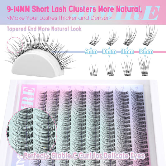 JIMIRE 160Pcs Self Adhesive Eyelashes Natural Look 9-14MM Wispy Pre Glued Lash Clusters No Glue Needed Press on Lashes Clusters Reusable Self Adhesive Eyelash Clusters Beginners Friendly