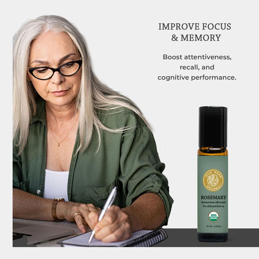 Silk Road Organic Rosemary Essential Oil & Jojoba Roll On, 100% Pure USDA Certified Aromatherapy to Improve Memory & Focus & Hair Health - 10 ml Roller