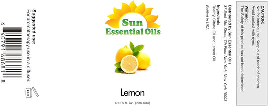 Sun Essential Oils - Lemon Essential Oil 8 oz for Cleaning, Diffuser, Humidifier & Aromatherapy Body Massage, Lemon Fragrance Scent for Home Candle Making with Dropper