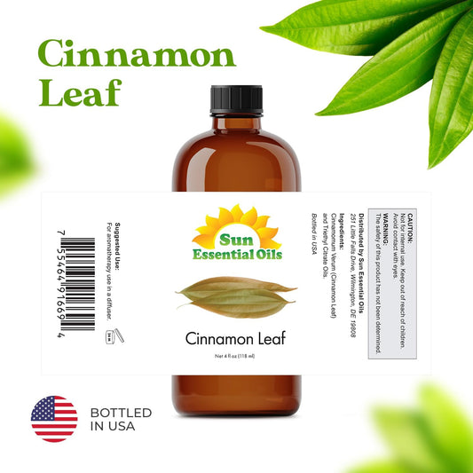 Sun Essential Oils Cinnamon Leaf Essential Oil 4oz Bottle for Humidifier, Diffuser, Soaps, Candles, Aromatherapy, Home Care, and Soap Making