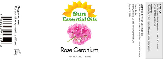 Sun Essential Oils - Rose Geranium Essential Oil 16oz for Aromatherapy, Diffuser, Calming, Skin Care
