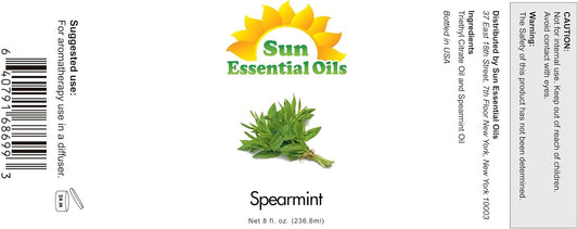 Sun Essential Oils Spearmint Essential Oil 8 oz – for Diffusers, Massage & Aromatherapy