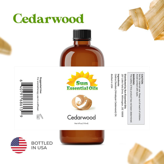 Sun Essential Oils - Cedarwood 4oz Bottle for Humidifier, Diffuser, Soaps, Candles, Hair and Skin Care