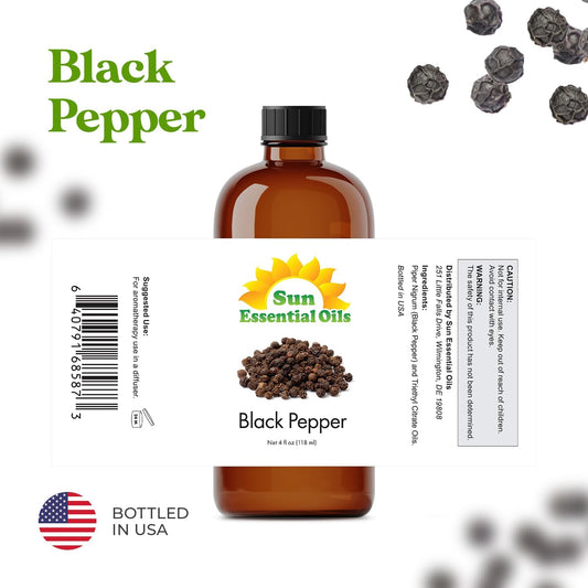 Sun Essential Oils - Black Pepper 4oz Bottle for Diffuser, Humidifier, Aromatherapy, Self and Home Care - Black Pepper Oil - Aromatherapy Oil