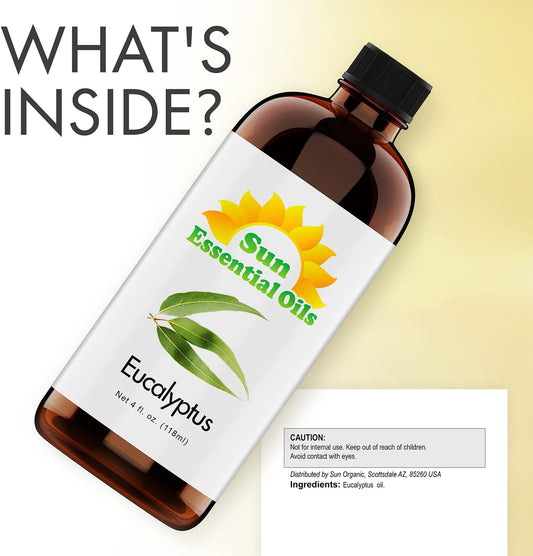Sun Essentials Oils - 4 oz Eucalyptus Essential Oil with Dropper for Diffuser, Skin, Aromatherapy Massage, Humidifier, Scent for Candle, Lotion & Soap Making at Home, Fragrance for Room