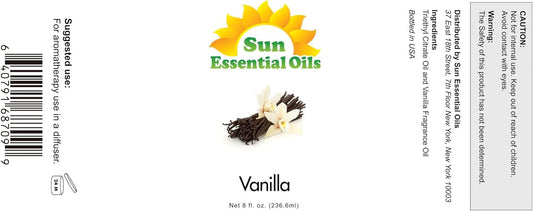 Sun Essential Oils - Vanilla Essential Oil 8 oz with Dropper for Diffuser, Skin, Hair, Humidifier & Aromatherapy Massage, Scent for Candle, Lotion & Soap Making & Room Freshener