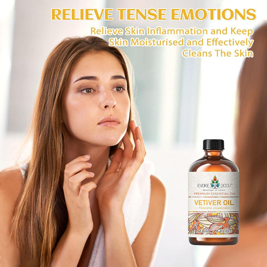 EVOKE OCCU Pure & Natural Vetiver Essential Oil for Skin, DIY, Candle and Soap Making - 4 Fl Oz
