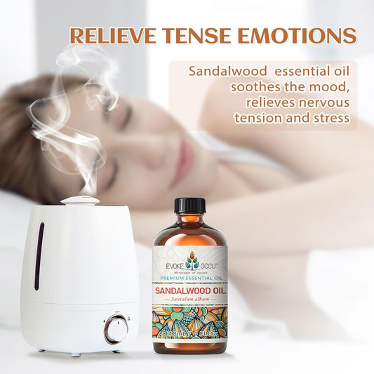 EVOKE OCCU Sandalwood Essential Oils for Skin Care, Diffuser, Perfume, Candle and Soap Making - 4 FL Oz