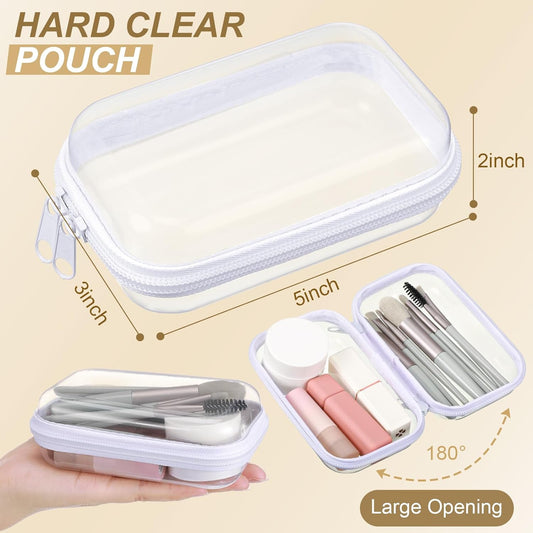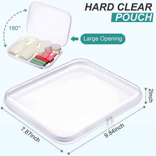 【6-Pack】 Clear Hard Shell Zipper Case Set | Durable Travel Pouches for Toiletries, Makeup Storage Organizer, Toy Storage Box | Transparent Cosmetic Bags with Zipper for Organization (white)