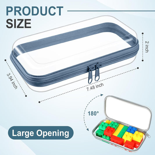 Hoolerry 3 Pcs Clear Hard Zipper Case Plastic Pouch Transparent Hard Case Clear Makeup Bag Portable Travel Organizer Bin for Cosmetics, Building Blocks, Puzzles(Blue,Xs)