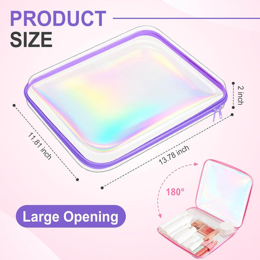 Hoolerry 3 Pcs Clear Hard Zipper Case Plastic Pouch Transparent Hard Case Clear Makeup Bag Portable Travel Organizer Bin for Cosmetics, Building Blocks, Puzzles(Laser,L)