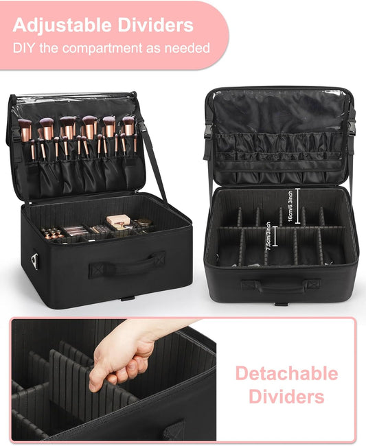 Relavel Makeup Bag Large Makeup Case Professional Cosmetic Storage Organizer Box Brush Holder with 3 Clear Set Bags for Makeup Artists with Shoulder Strap & Adjustable Dividers